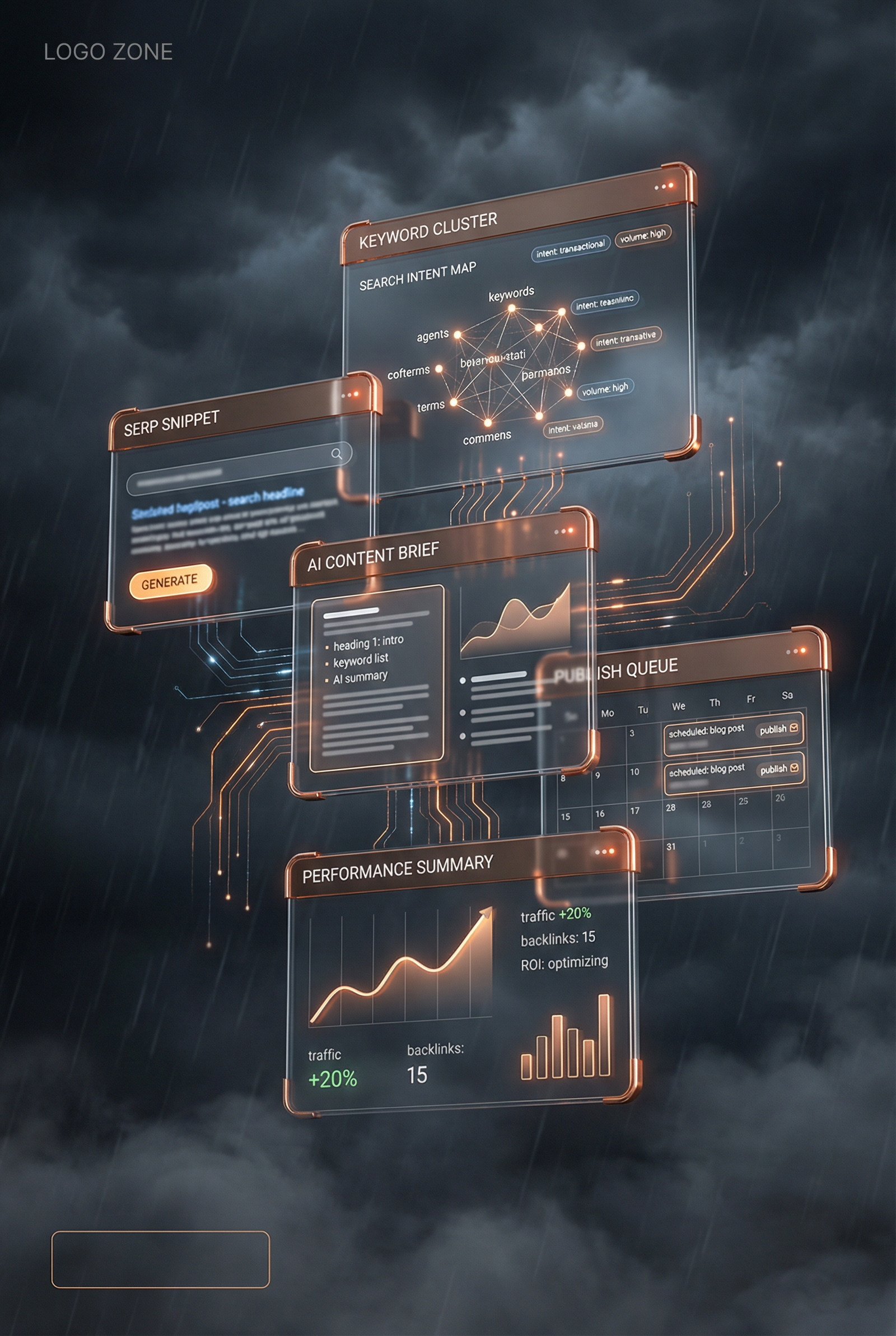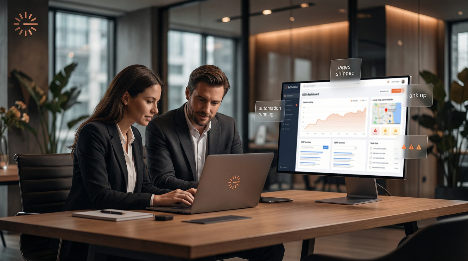 ByTheWise automates the entire SEO pipeline: keyword research, content creation, optimization for Google and AI engines (ChatGPT/Claude), premium backlinks, and publishing.